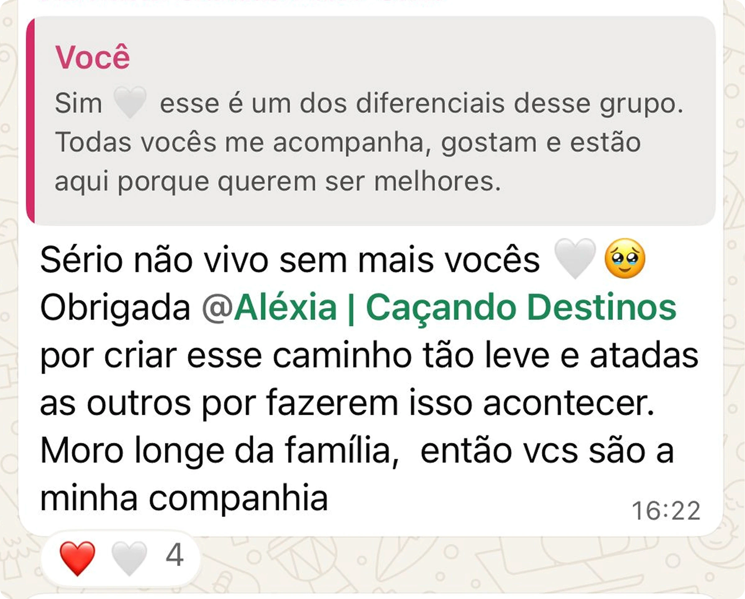 Grupo no WhatsApp com troca diária e tira-dúvidas.