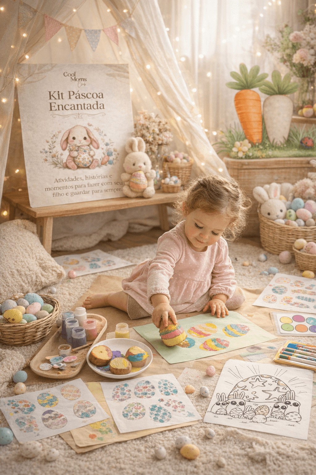 O Kit Páscoa Encantada reúne mais de 30 atividades, histórias de fé e um roteiro completo para transformar essa época em algo que fica — na memória dele e no seu coração.